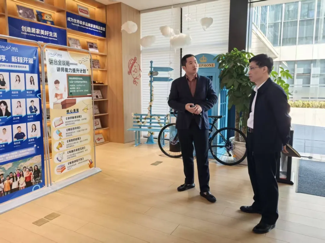 调研期间,陈伟权局长一行参观了公司办公区域,详细听取了公司始创人朱良先生关于海汇星驰发展历程、主营业务及多渠道出海成果的汇报,并对公司运营模式与品牌建设给予积极评价。